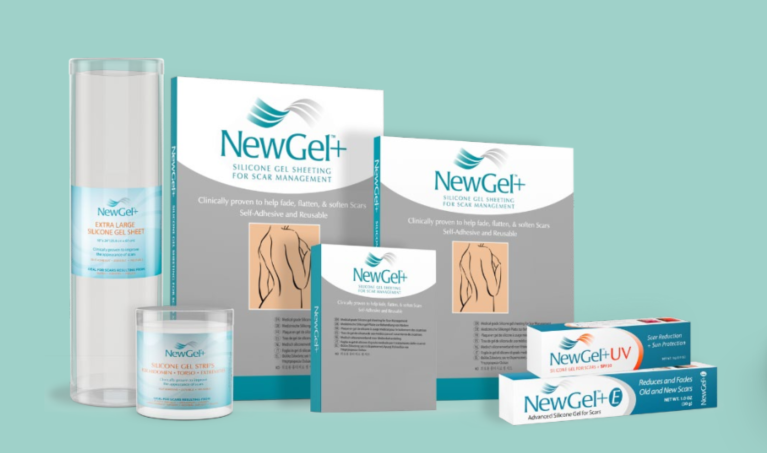 NewGel+™ cung cấp một dải sản phẩm silicone y tế 100% với đủ loại: gel, miếng dán, và công thức được bảo vệ bởi tia UV — được phát triển để làm phẳng, làm mềm và làm mờ sẹo ở mọi loại.